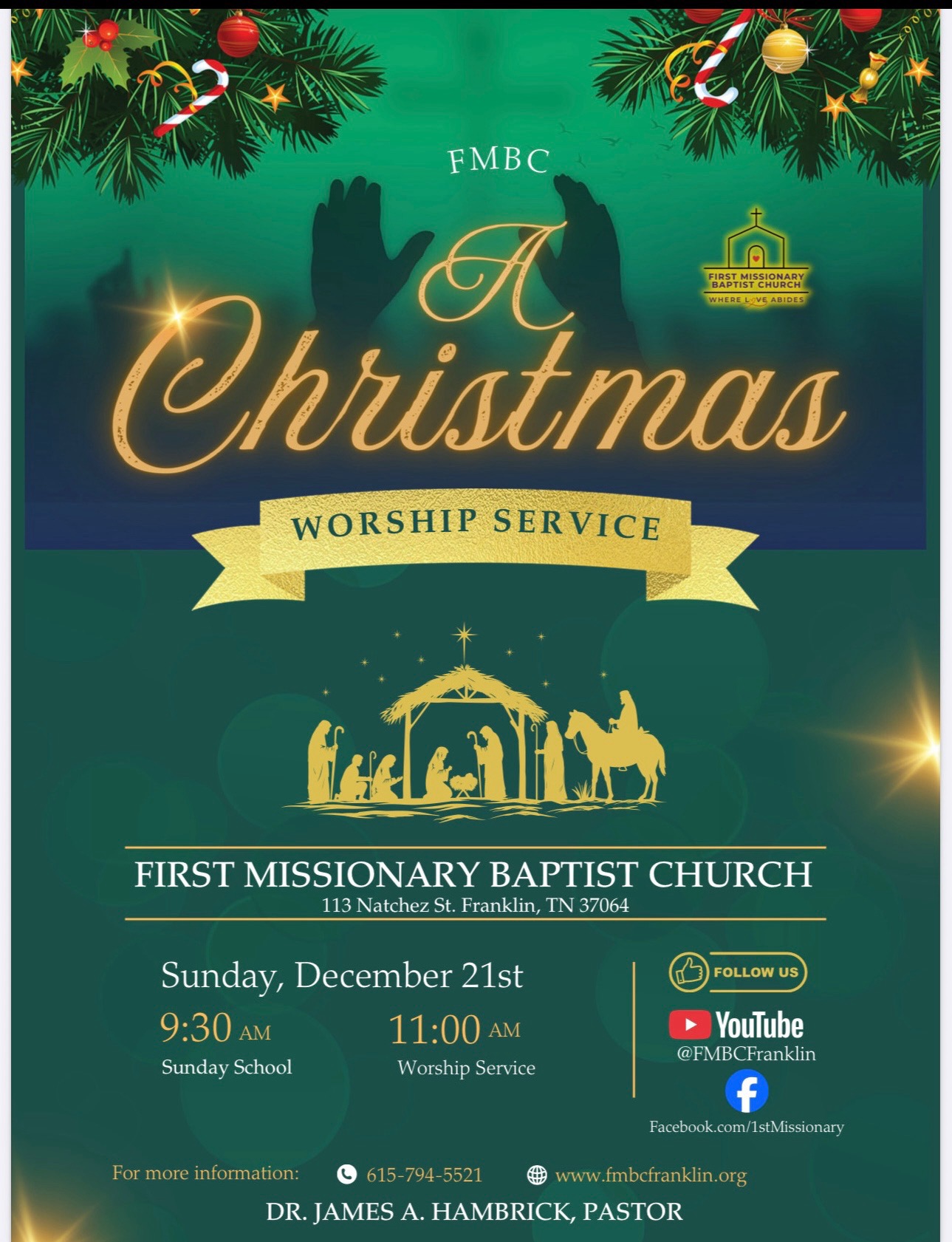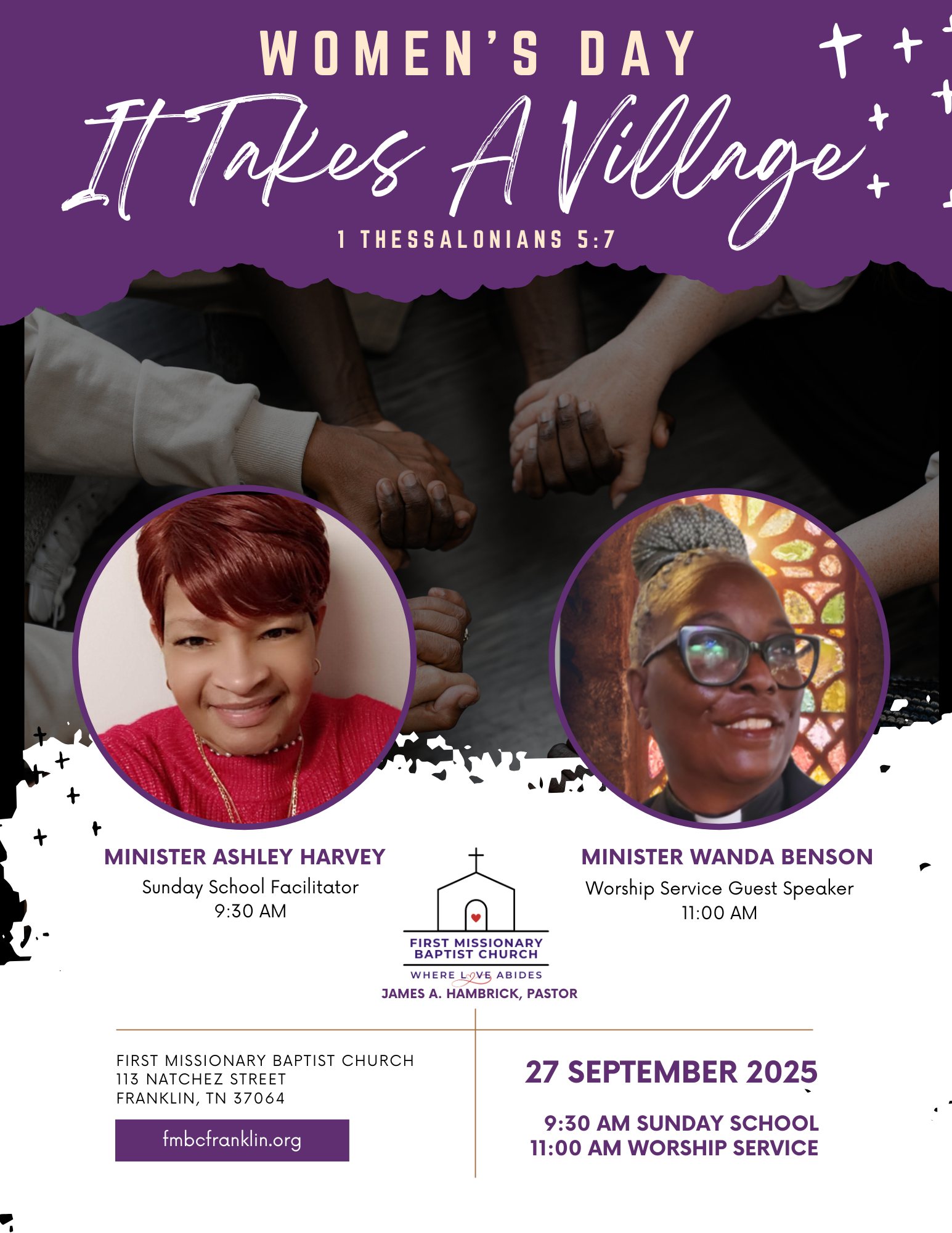 Welcome to First Missionary Baptist Church, where love abides. For over 154 years, we have been a beacon of faith and hope in the Franklin community. Under the leadership of Pastor James A. Hambrick, our mission is to spread the love of Christ and serve our community with compassion and dedication. Join us every Sunday for worship and fellowship as we grow together in faith and love. We are excited to welcome you to our family and look forward to sharing God’s blessings with you.